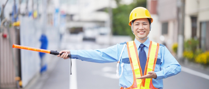 工事現場では、工事現場の敷地への出入り口と敷地内での車の誘導が必要になります。 また工事車両の出入りにおいて、死角に人や車、障害物がないかを確認します。 簡単に見える仕事ではありますが、周囲に気を配り、誰もが安心できる環境づくりのためには欠かせない業務です。